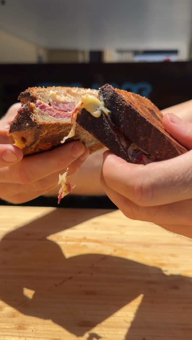 smoked corned beef, Swiss cheese, sauerkraut, housemade Russian dressing (add pickle for a $1)